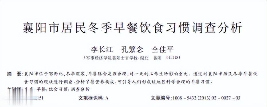 参考资料:[1]李长江,襄阳市居民冬季早餐饮食习惯调查分析,四川烹饪高等专科学校学报,2013-03-10