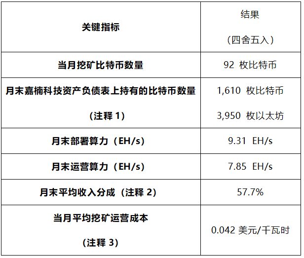 嘉楠科技董事长兼首席执行官张楠赓表示,"十月嘉楠科技运营指标稳中有升,已部署算力、运行算力、北美矿机效率及已安装电力容量均优于九月,收益分成比例与电力成本维持稳定。尽管全网挖矿难度抬升,公司当月依旧产出92枚BTC;月末已部署算力达9.31 EH/s,运行算力7.85 EH/s。通过将部分低效项目矿机重新调拨,截至11月7日自营挖矿整体运行算力已升至约8.25 EH/s。依托严谨的挖矿运营及持币策略,公司加密货币总持仓进一步增长至1,610枚BTC与3,950枚ETH。"
