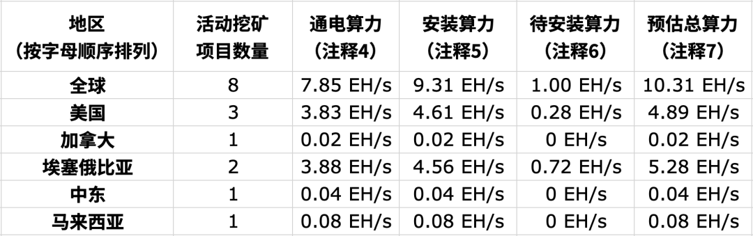 6.指已交付到每个挖矿项目所在国家但尚未安装的算力。